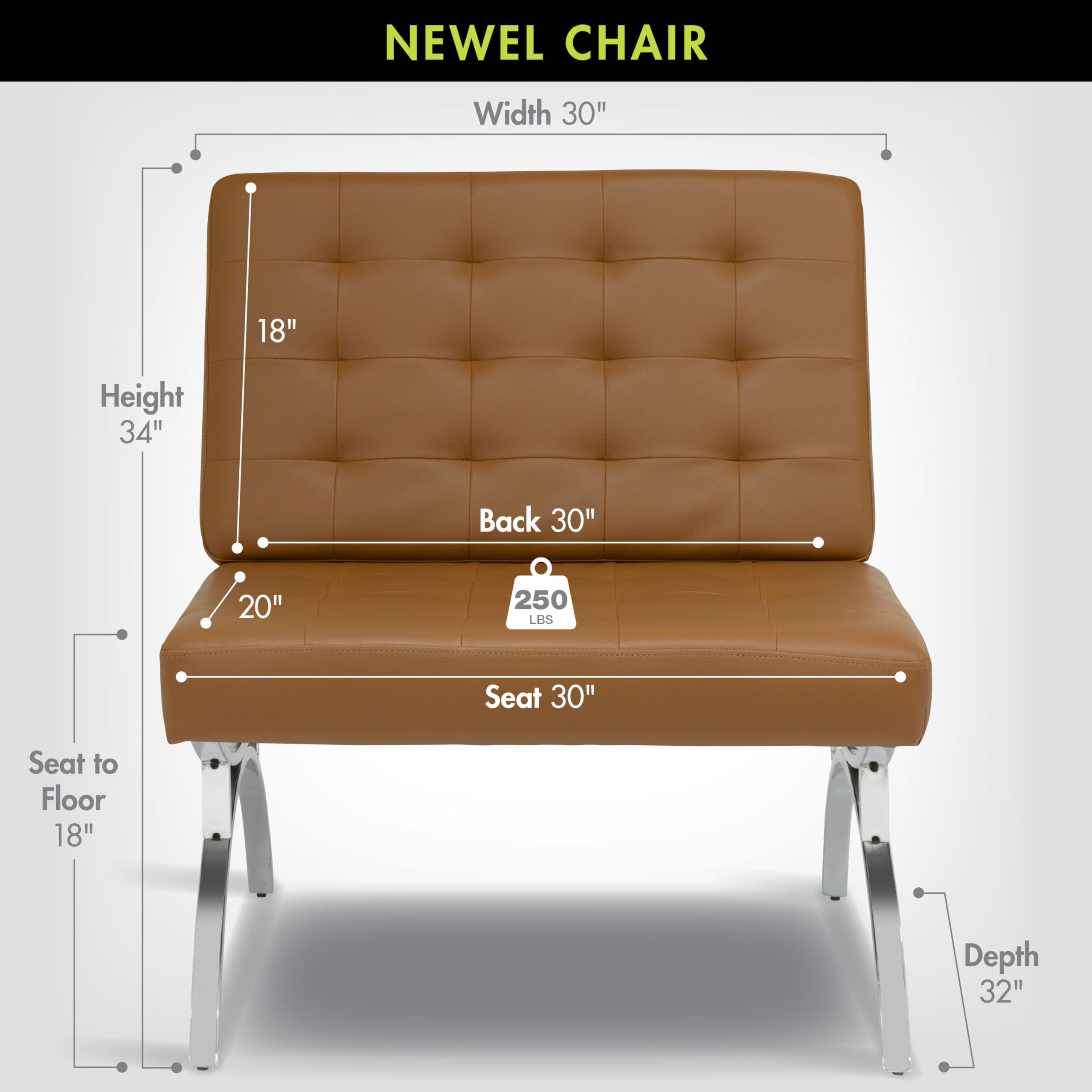 Newel Modern Accent Chair in Blended Leather, Chrome/Caramel