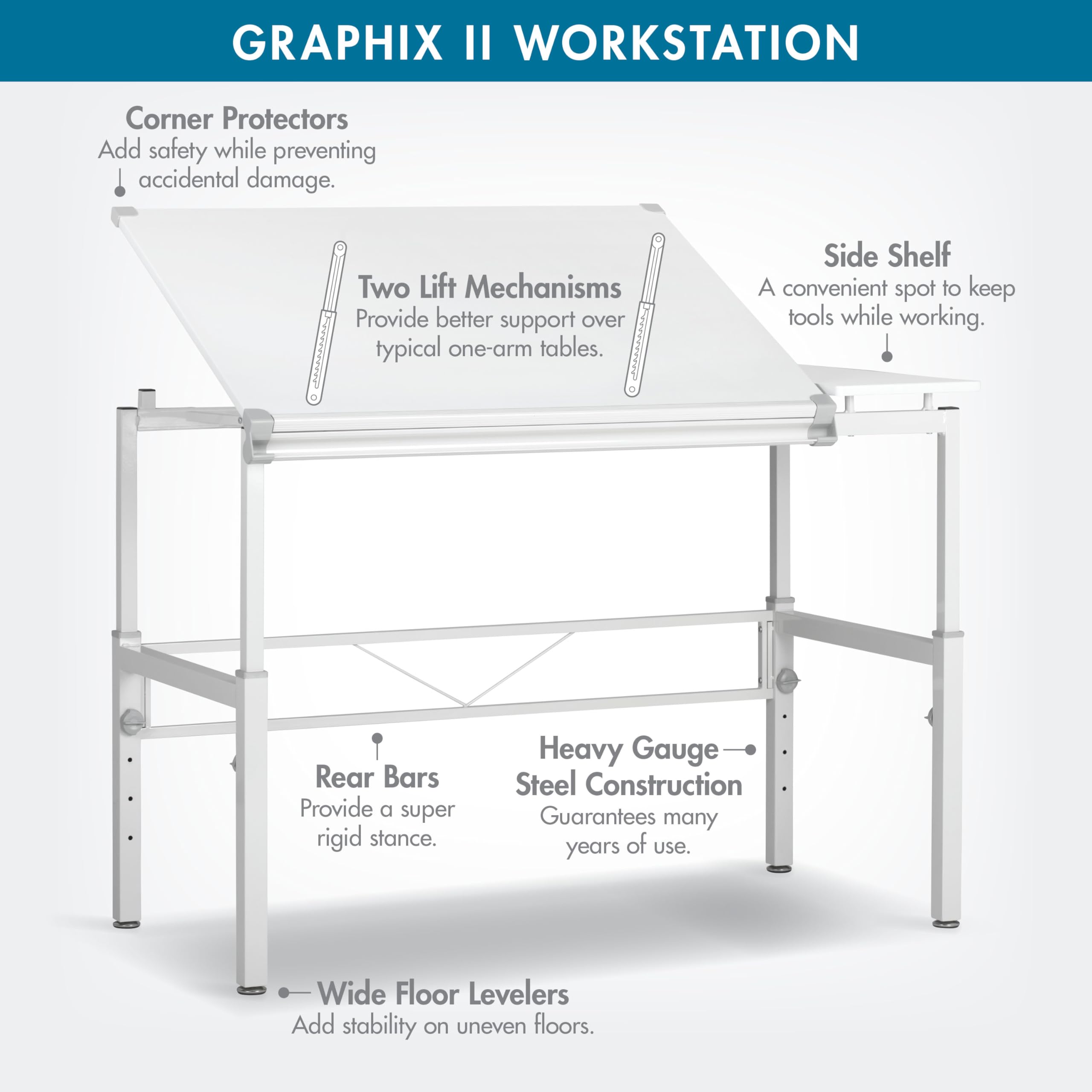 - Sturdy & Durable Design: Crafted from heavy-gauge steel, this desk features two lift mechanisms for enhanced support, ensuring long-lasting use.