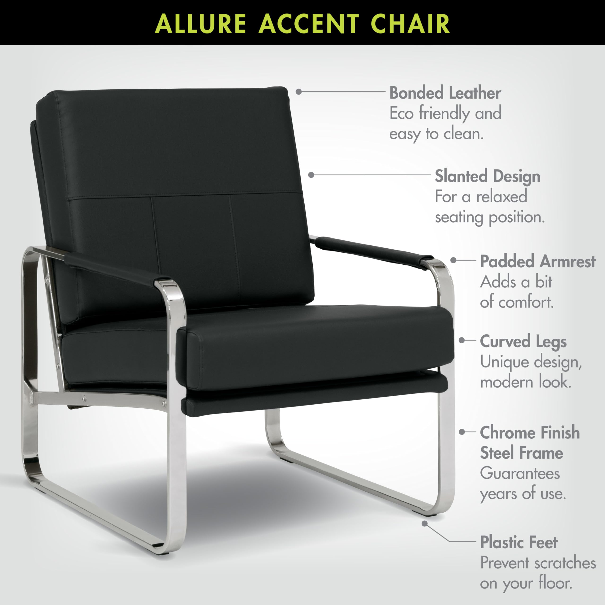 Studio Designs Home Allure Modern Accent Chair in Blended Leather, Chrome/Black